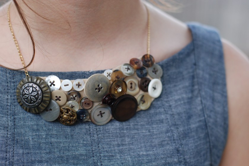 Custom bib necklace made of buttons, sold originally on Etsy at www.themooseandtheowl.etsy.com