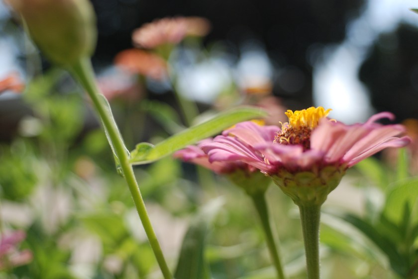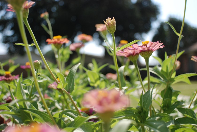I played around with that new lens, the 24mm macro, taking pictures of our mailbox-garden zinnias.