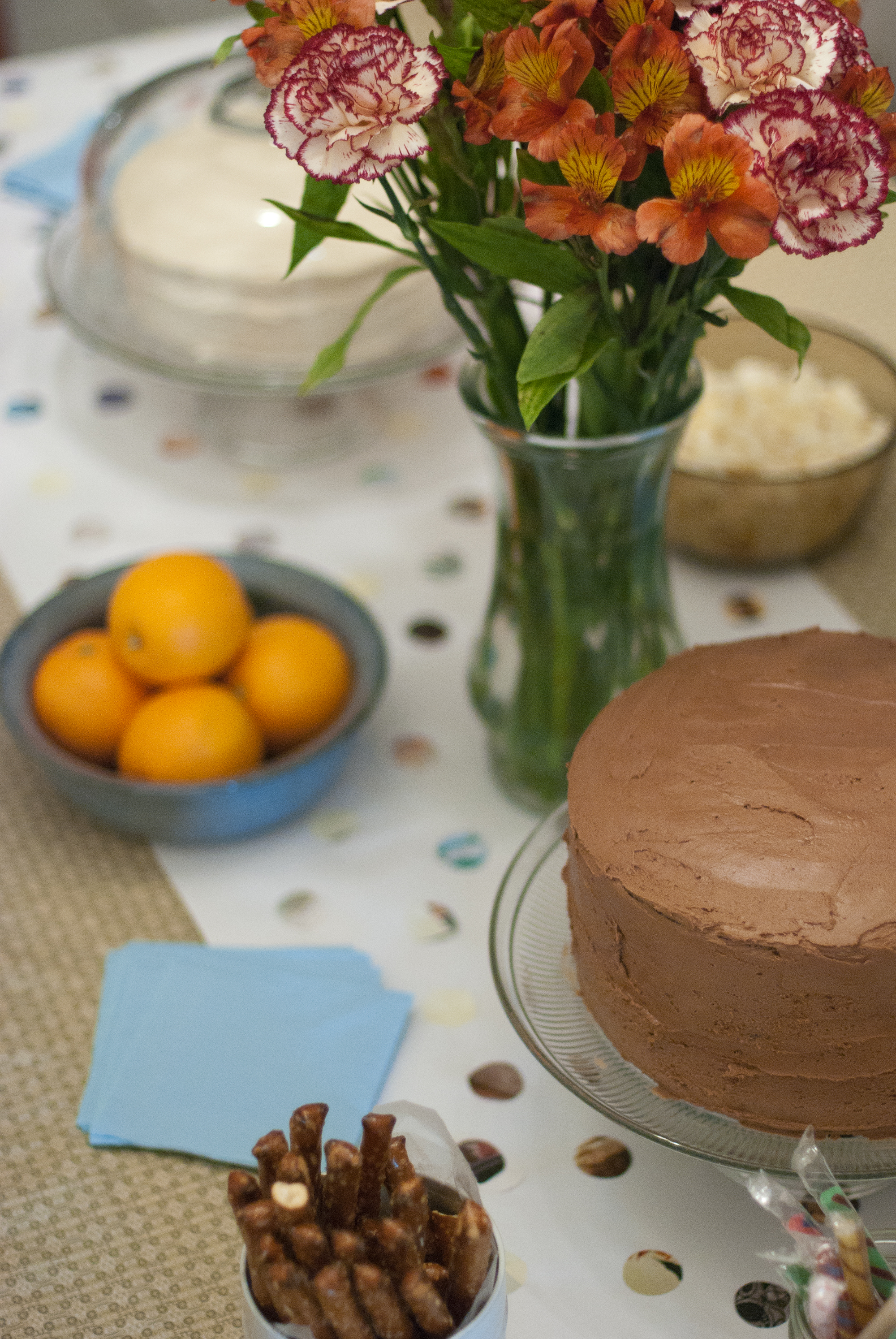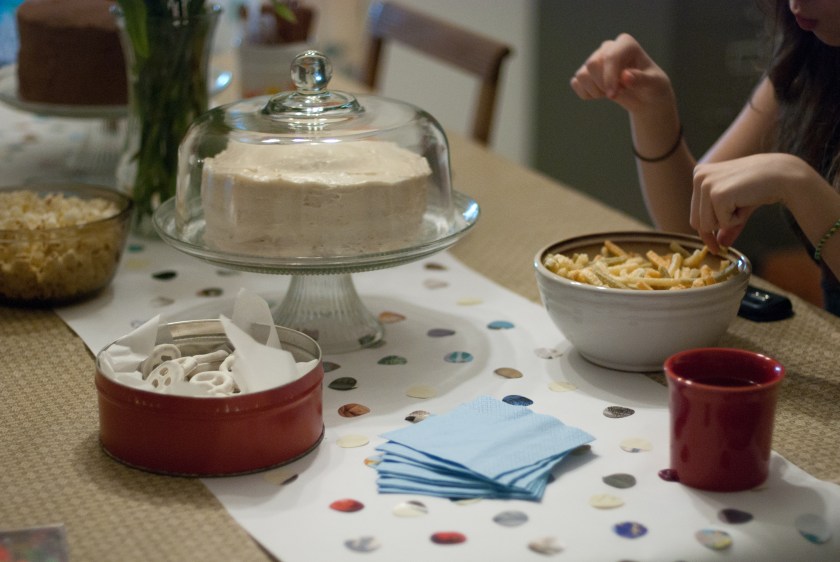 Like, I almost went through 16 pages of chocolate cake recipes on Bon Appetit because I thought that’s where I found the recipe for my chocolate birthday cake back in February…. and then I realized where the recipe actually was. On the recipe blog of this cool girl who lives in NYC and shoots all her food photos WITH FILM. So impressive. They’re beautiful photos. But, that’s where the chocolate cake recipe was from. The enormous, three layer, batter too big for the bowl cake. Right here. And the tinier vanilla three layer cake I made that for that party also was from that blog. My cake was small because I think I 2/3rds the recipe or something. (I am aware that the above sentence is not proper grammar.)